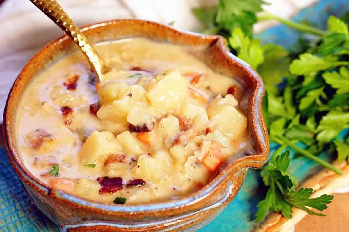 - When the potatoes are tender, add the cream, clams and bacon. Heat thru and taste the seasonings. Depending on how salty the bacon is you may need to add an additional ½ teaspoon of salt.