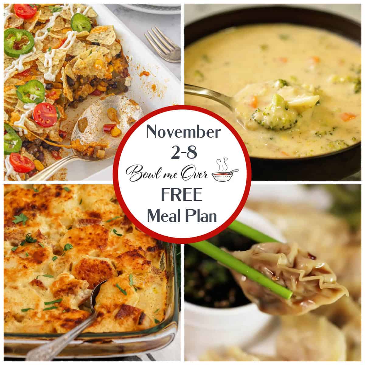 Every week, I share a free meal plan for you to use the following week. You'll have seven main dish recipes, along with a few extras and of course dessert.